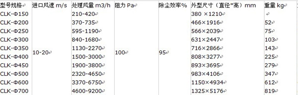CLK擴散式旋風(fēng)除塵器,適用于捕集干燥的非纖維性的顆粒狀粉塵,主要特點是筒身呈圓錐形,因而減少了含塵氣體自筒身中心短路到出口去的可能性,并裝有圓錐形的反射屏,防止兩次氣流將已經(jīng)分離下來的粉塵重新卷起,被上升氣流帶出,因而提高了除塵效率。